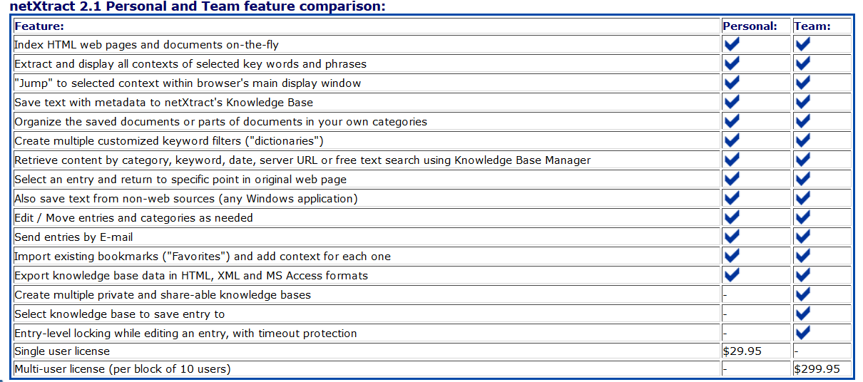Simple to set up and maintain, netXtract Team makes it a snap to create one, or many, shared knowledge bases. Simply install a knowledge base anywhere within your LAN, set a pointer to it from within netXtract’s Knowledge Base Manager, and your group can begin to share information immediately.